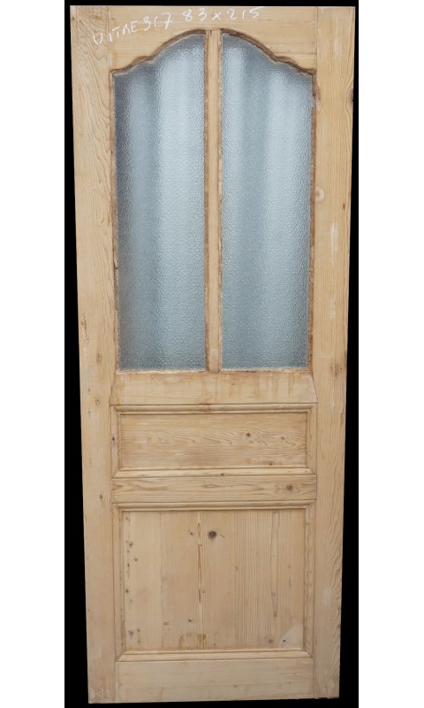La restauration des portes intérieures vitrées est plus délicate que pour une porte classique. C’est pour cela que nous préférons mettre nos trouvailles en vente sans les vitrages, trop fragilisés au cours du temps. Il est néanmoins possible de nous commander un ensemble de vitraux anciens en verres sablés, gravés ou martelés pour apporter un peu d’opacité.
