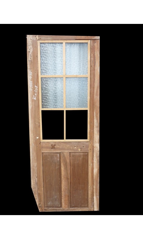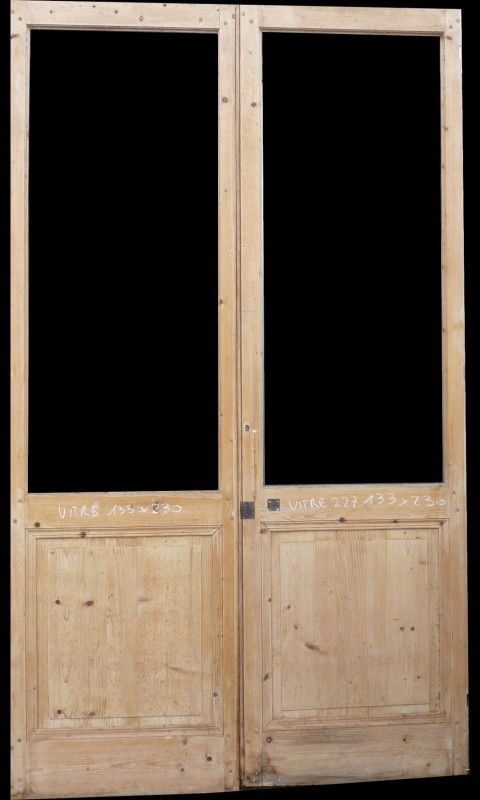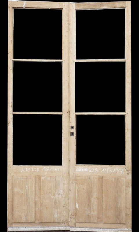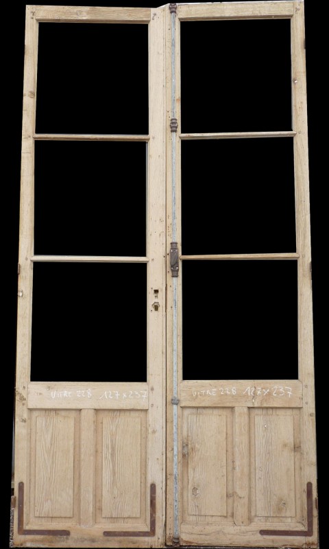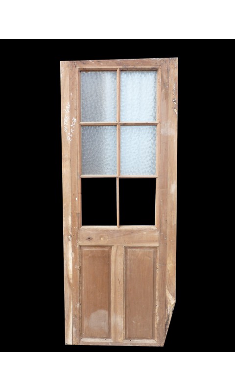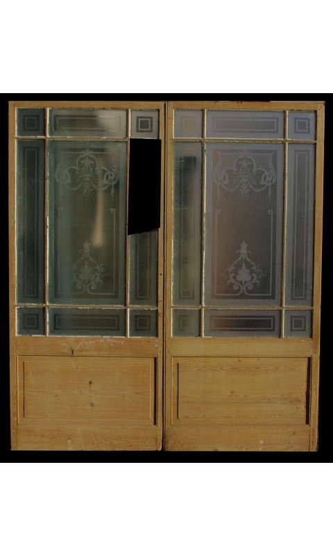 La restauration des portes intérieures vitrées est plus délicate que pour une porte classique. C’est pour cela que nous préférons mettre nos trouvailles en vente sans les vitrages, trop fragilisés au cours du temps. Il est néanmoins possible de nous commander un ensemble de vitraux anciens en verres sablés, gravés ou martelés pour apporter un peu d’opacité.