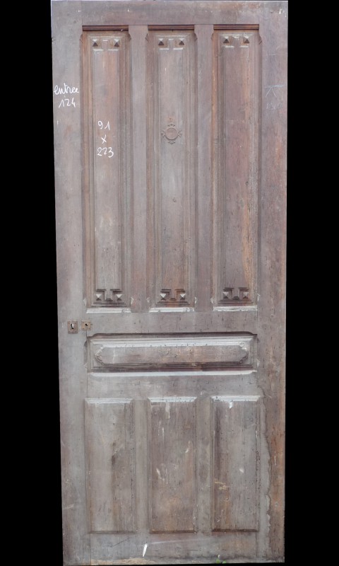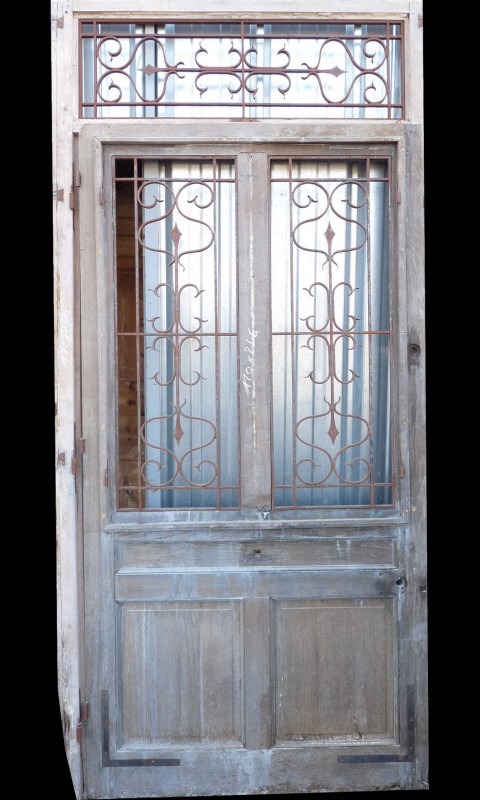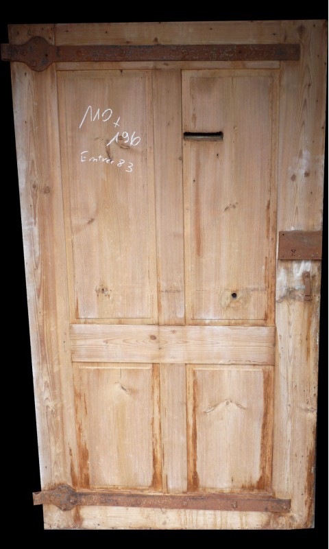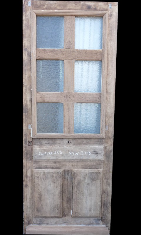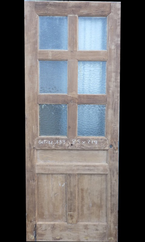 Porte en chêne revitrée à postériori. Cette porte peut être remise à 4 ou 6 carreaux.