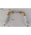Paire de bouton en porcelaine blanc ovale, collerette en laiton, légèrement marquée par le temps mais pas abimée, carré de 6 mm.