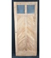 Porte doublée sur une face chêne et sapin genre 2 portes à 3 panneaux l'autre face planches cloutées verticales